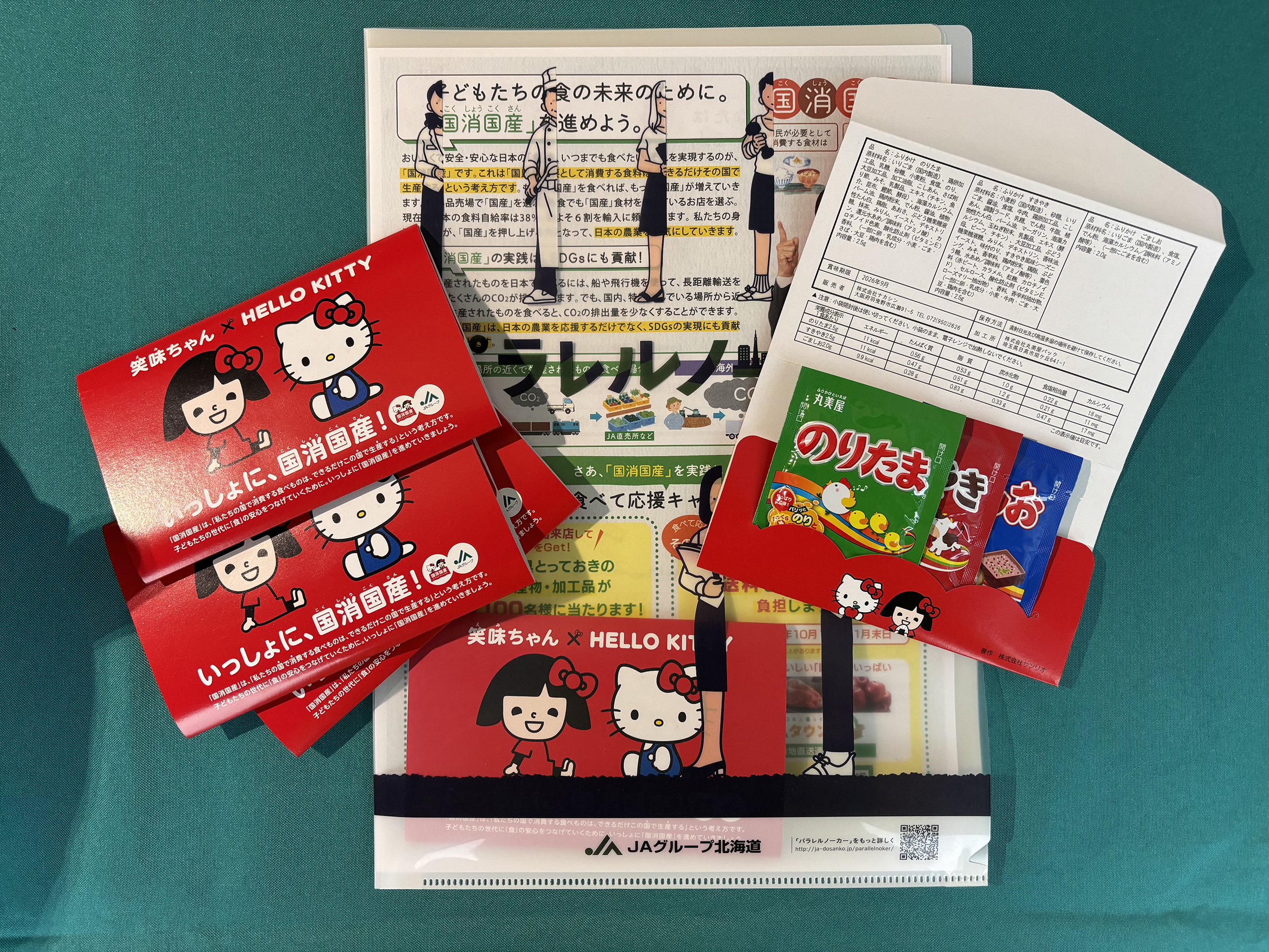 話題の 「笑味ちゃん」と「ハローキティ」のコラボふりかけ も景品として配布され、子どもから大人まで大人気。可愛らしいパッケージに加え、「国消国産(こくしょうこくさん)」の理念が込められたふりかけは、
