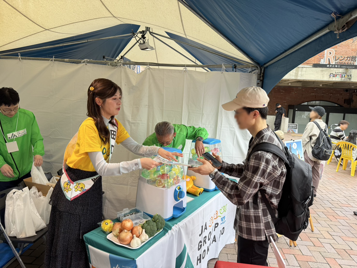 ブースでは、試飲も行われ、多くの人が「飲みやすい!」「野菜の甘みが感じられる」と感想を口にしながら、北海道ならではの恵みを体感。