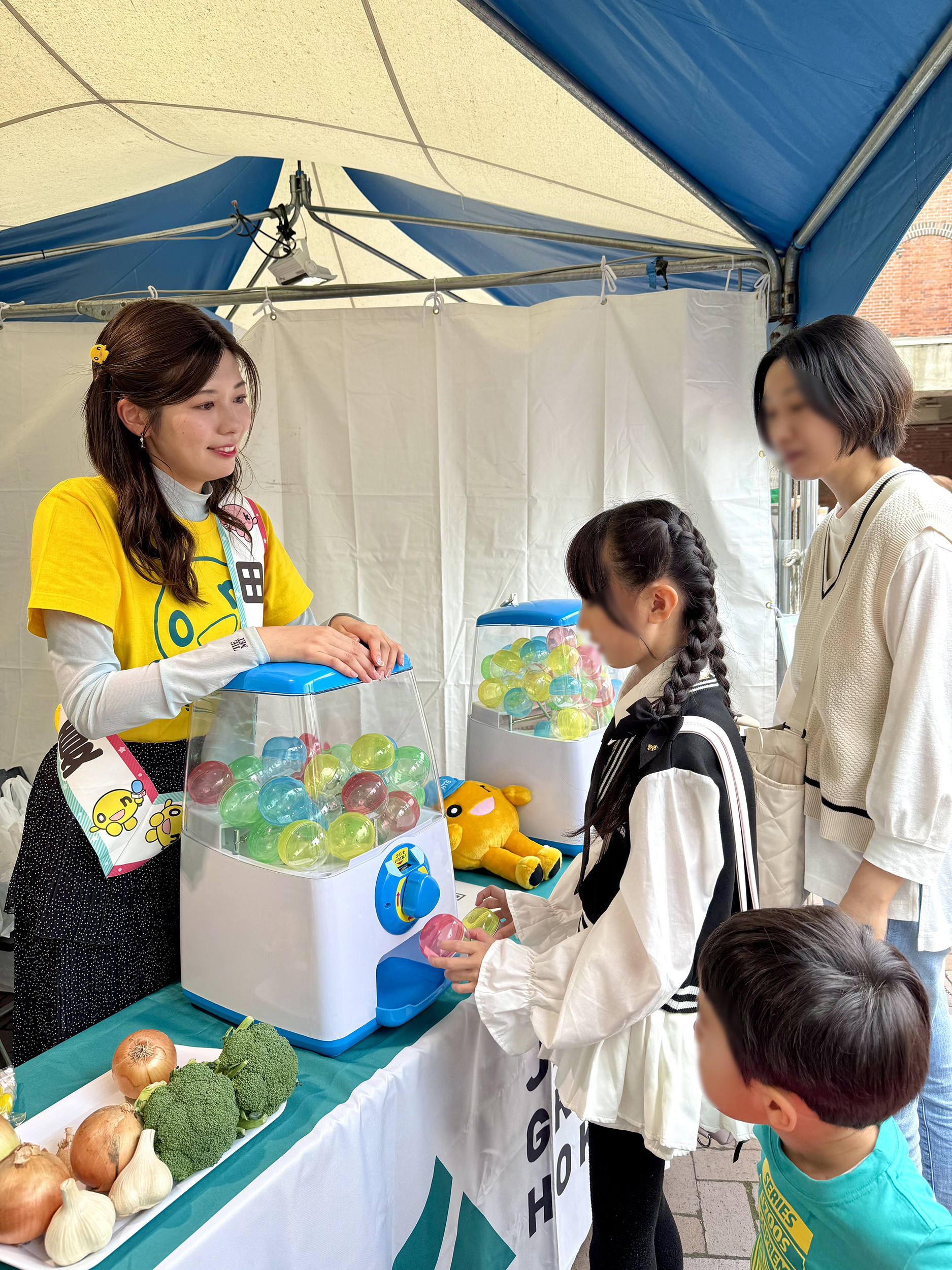 参加者は「イチモニ!農園」に関するクイズに挑戦し、正解するとカプセルトイを回せる仕組み。長沼町産の新鮮なブロッコリー をはじめ、嬉しい景品が用意されており、大人から子どもまで大盛り上がりでした。
